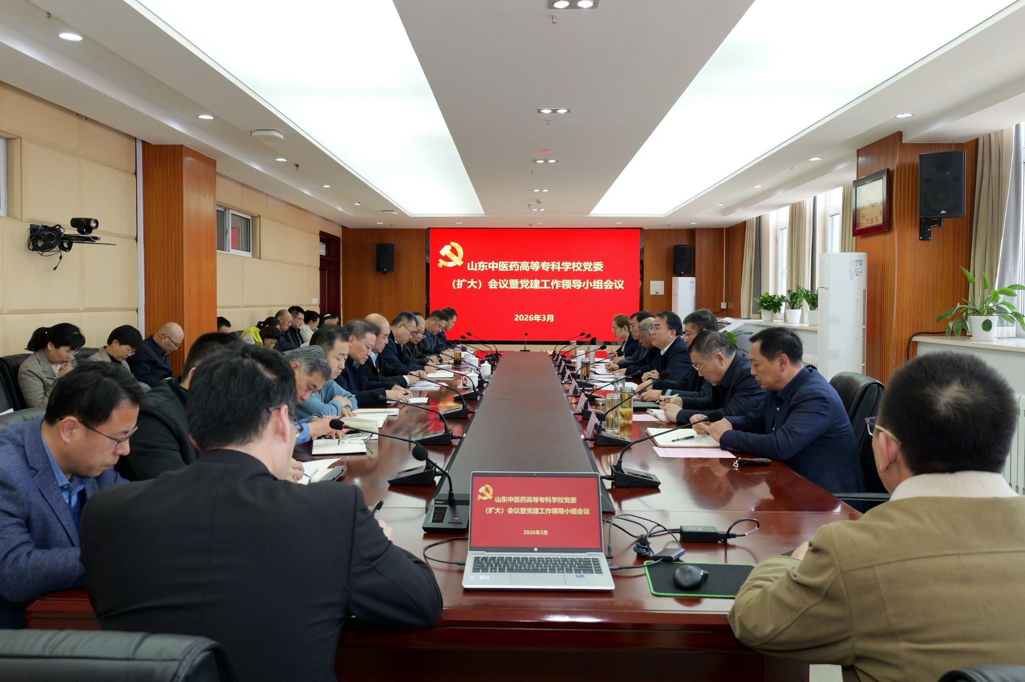 学校党委书记、党的建设领导小组组长战文翔主持会议并讲话,学校党的建设领导小组全体成员、各党总支及直属支部书记参加会议。